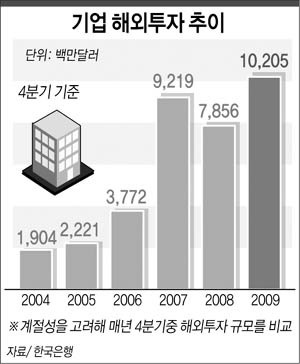 기업 투자의 분기별 해외 유출 규모는 2006년까지 10억~30억 달러대에 머물렀지만 2007년 4분기 92억1천930만 달러로 크게 늘었다.