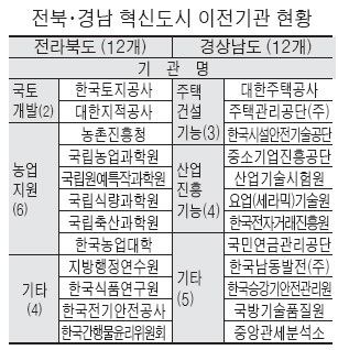 경남도는 지난해 11월 농촌진흥청·국립농업과학원·국립원예특작과학원·국립식량과학원·국립축산과학원·한국농업대학 등 전북혁신도시에 조성될 예정인 농업지원군 기관을 경남에 재배치하는 대신, 토지주택공사 본사·주택관리공단·한국시설안전공단 등은 전북 배치하는 방안을 국토부에 제출했다. '농업관련 기능분을 경남에 배치하고, 주택건설 기능분은 전북에 배치한다'는 방안이다.