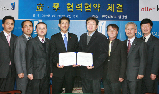 전주대학교(총장 이남식)와 KT 전북법인사업단(단장 신판식)이 3일 오전 전주대 본부 접견실에서 산학협력을 체결했다.