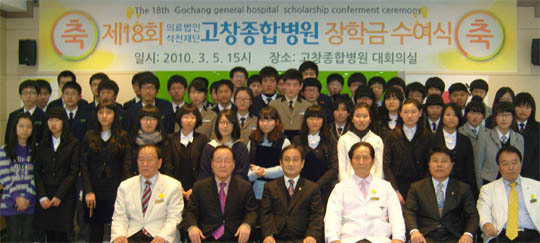 올해로 18회를 맞는 의료법인 석천재단 장학금 수여식이 5일 오후 3시 고창종합병원(원장 조병채, 이사장 조남열) 대회의실에서 열렸다.