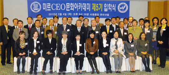 우석대학교(총장 라종일)가 운영하는 미르CEO문화아카데미 제5기 입학식이 지난 4일 서울 장충동 서울클럽에서 열렸다.