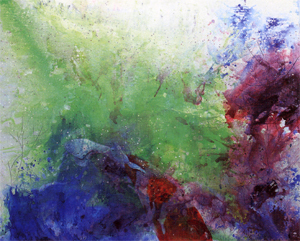 '기억, 그리고 흔적'은 천천히 혹은 빠르게 움직이는 물고기의 모습을 작은 캔버스 126개로 붙여 만든 대작. 시판되는 마블링은 색이 고작 6개라 손수 색을 만들어 썼다는 그는 더 큰 세상에서 자유롭게 살고 싶은 자신을 욕구를 드러내기 위해 100호 이상의 대작만 소화했다.