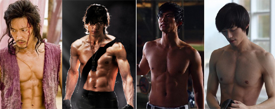 이에 앞서 KBS 2TV '추노'는 그야말로 '벗은 몸'의 경연장이었다. 노비는 노비대로, 추노꾼은 추노꾼대로 상반신을 가리는 둥 마는 둥 간단한 옷차림으로 남자 배우들의 맨몸을 보여줬다.