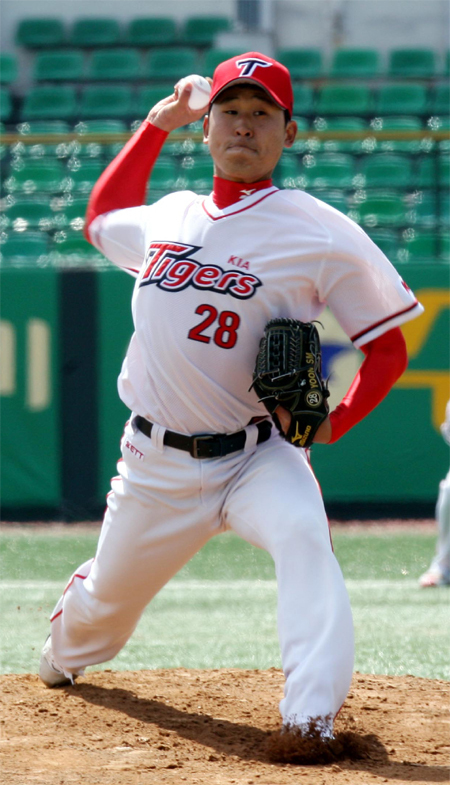 KIA 타이거즈 토종 에이스 윤석민…프로야구 SK와 시범경기 완벽투구