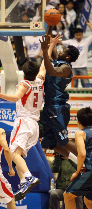 KCC 추승균은 이날 7점을 넣어 KBL 최초로 플레이오프 1천200득점을 돌파(1천204점)해 기쁨이 두 배가 됐다.