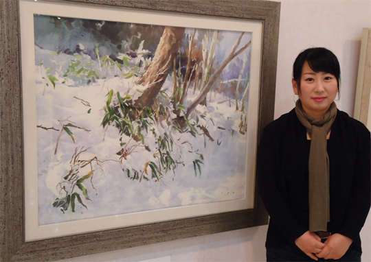 '설경'은 특히 인기가 좋다. 잔잔하고 고요한 서정성이 깔려 있다. 똑같은 노란색 장미도 불투명 수채화와 투명 수채화는 전혀 다른 매력을 안겨준다. 색이 너무 아름다워 질투에 사로잡히게 할 것만 같은 노란 장미와 순수하면서도 은은하게 품어내는 노오란 장미가 그것이다.