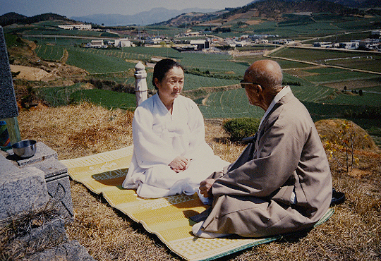 김연수의 소리동기였던 노희상과 수제자 오정숙(김연수 묘소). (desk@jjan.kr)