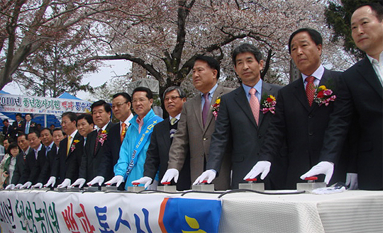 한국농어촌공사 동진지사(지사장 서삼석)는 20일 2010년 풍년농사를 기원하는 제83회 백파 통수식을 가졌다.