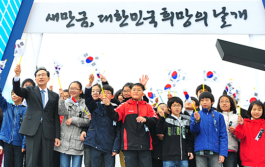 농림수산식품부와 농어촌공사는 27일 새만금 방조제 중간지점인 신시도 광장에서 새만금 방조제 준공식을 갖고, 새만금 방조제의 완성을 공식 선언했다.
