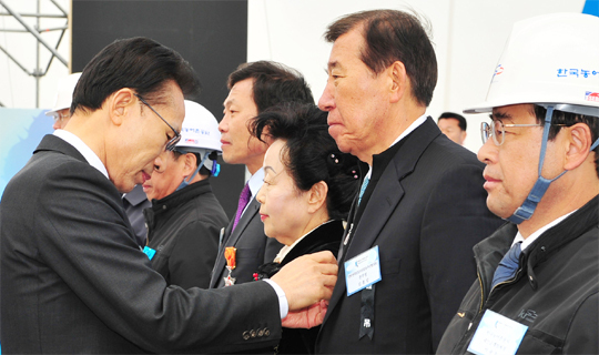 이명박 대통령은 27일 신시도광장에서 열린 새만금방조제 준공식에서 새만금사업을 지원한 공로로 김종량 전북 도민운동 추진협의회 본부장 등 유공자 12명에게 포상했다.