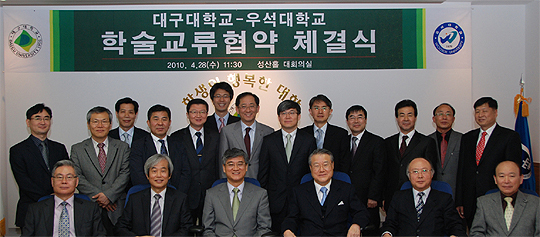 우석대학교(총장 라종일)와 대구대학교(총장 홍덕률)가 28일 대구대 성산홀에서 영호남지역 대학 교류 활성화를 위한 학술교류 협정을 체결했다.