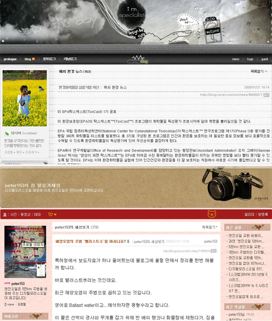 블로그 'http://blog.naver.com/wishbee'에서는 '환경을 생각한다는 것은 불편한 진리를 행동한다는 것과 같다'는 운영자 위시비가 국내·외 환경 뉴스와 함께 대기·생태 상식 코너를 만들어 쉽게 이해할 수 있게 했다.