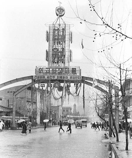 하지만 지금도 50대 이상은 이 곳을 지날 때마다 미원탑을 떠올리곤 한다. 사진 왼쪽에는 전주보건소와 아카데미극장(현 덕송빌딩)이 보인다. 멀리 전동성당도 보인다.