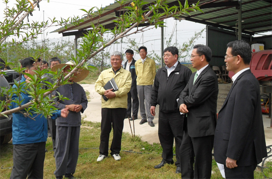 또 한병옥씨는 "우산식지주 시설보급으로 최상품의 복숭아를 생산하고 있으나 최근 이상기온으로 소득에 커다란 피해가 예상된다"며 대책을 호소했다.