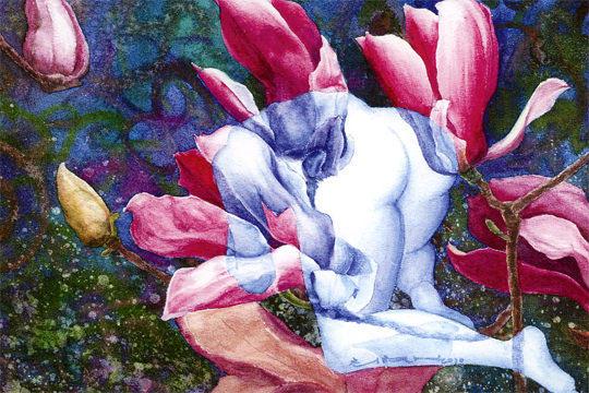 목련이 몰고온 봄이 반가워 봄을 와락 안아버렸다. 서양화가 최현실씨(45)가 표현한 '봄의 여심'이다. 상처받은 마음을 위로받고자 꽃으로 들어가는 여성을 표현한 '상처와 희망'은 새로운 희망을 보여준다. 화폭은 생명의 에너지로 충만해있다.