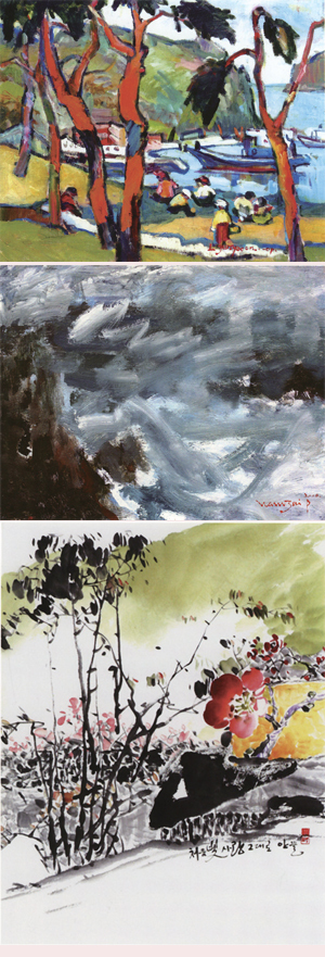 (위부터)임정순 作‘부둣가’, 박남재 作‘동해파도’, 김영희 作‘처음 빛 사랑 그대로’ (desk@jjan.kr)