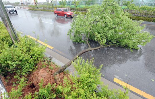 23일과 24일 강한 바람을 동반한 많은 비가 도내 전역에 내린 가운데 전주 도심에서는 가로수가 뿌리째 뽑혀 도로를 덮치는 사고가 발생했다.