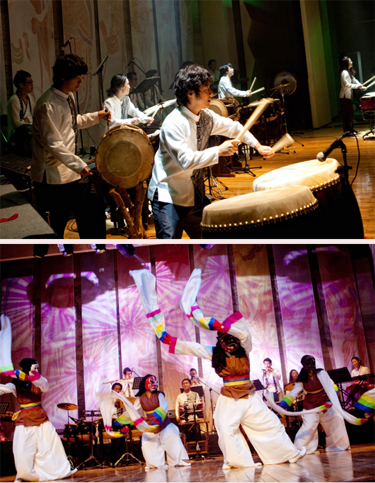 (위)난타공연, (아래)창작집단 '탈머리' 공연 (desk@jjan.kr)