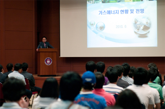 박환규 한국가스안전공사 사장은 1일 전북대학교 진수당에서 전북대학교 R&D관계자를 대상으로 가스에너지 안전 주요정책, 과학기술 발전, 기술인력양성, 학술연구 진흥 및 안전에 대해 강연회를 실시했다.