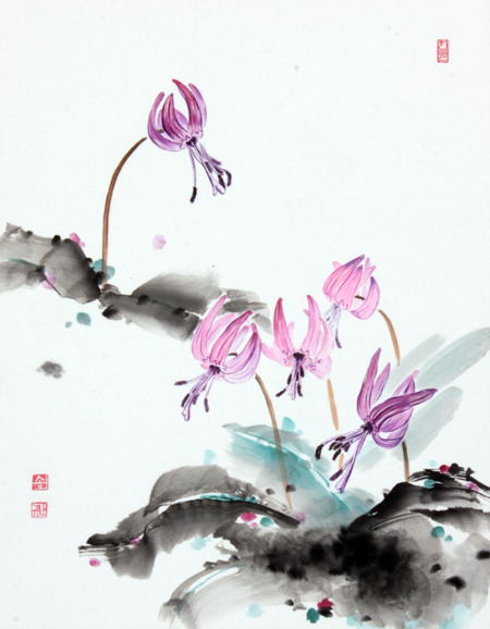 수줍은 듯 고개를 숙인 채 다소곳이 맺혀 있던 꽃봉오리가 피기 시작한다. 얼레지는 여섯장의 꽃잎 끝의 뒷면이 서로 맞닿을 정도로 완전히 뒤로 젖혀져 피어난다. 그래서 보랏빛의 긴 암술대와 그를 둘러싼 수술대가 고스란히 드러난다. 꽃이 활짝 피는 정도가 아니라 그야말로 파격적인 개방이라 할 수 있을 만큼 활~짝 피어난다. 그러면서도 크거나 화려하지 않고 소박하고 청초해서 요염하다기보다는 산골 방년의 처자 얼굴에 드러난 진정성과 같은 매력을 지니고 있다.