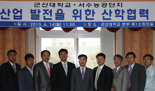 군산대학교와 군산 서수농공단지가 14일 대학 본부 소회의실에서 지역발전을 위한 협력관계 구축을 위한 협약을 체결했다.
