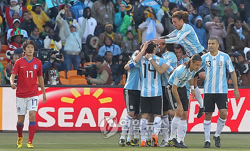 왼쪽 측면에서 아르헨티나가 얻은 프리킥 때 공격수 리오넬 메시가 차올린 공이 마르틴 데미첼리스의 키를 넘어 골문 앞에 있던 박주영의 오른 다리에 맞고 골대 안으로 빨려 들어갔다.