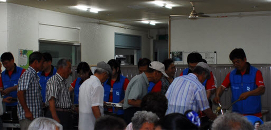 SC제일은행은 21일 전북불교대학을 방문, 이곳에서 무료식사를 이용하는 시민 100여명에게 준비해간 식사를 대접하고 설거지를 돕는 등 봉사활동을 펼쳤다.