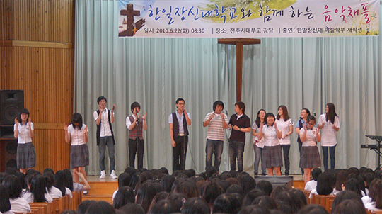 한일장신대학교 예술학부(학부장 박원선) 음악전공 학생들이 전주사대부고(교장 최홍규)의 아침 채플 시간에 초청받아 은혜로운 음악을 선물했다.