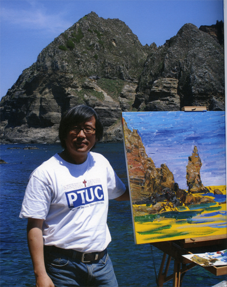 "독도가 우리 땅이라는 것은 알지만 진정 내 것이라면 사랑하고 가꿔야 한다고 봅니다. 이종상 화백의 말씀처럼 독도에 대한 우리의 태도가 호적에는 올려놓고 자식을 돌보지 못한 무책임한 가장에 비유하면 지나칠까요. 이런 연장선에서 저는 독도를 그리고 또 그릴 겁니다. 그것이 숙명이니까요."