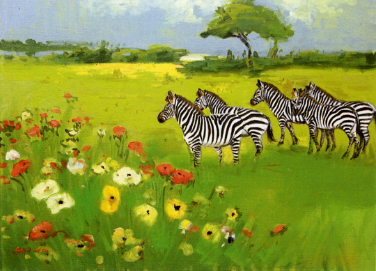 남아프리카 나무와 꽃의 원색 소나타는 영화 '아웃 오브 아프리카'를 연상시킨다. 넓은 평원에서 뛰노는 얼룩말은 강렬한 생명력을 보여준다. 얼룩말은 고독한 자신일 수도, 성장하는 아이들일 수도 있다. 산나리, 피마자, 선인장 등은 새로운 생명의 신비를 보여주는 매개체.