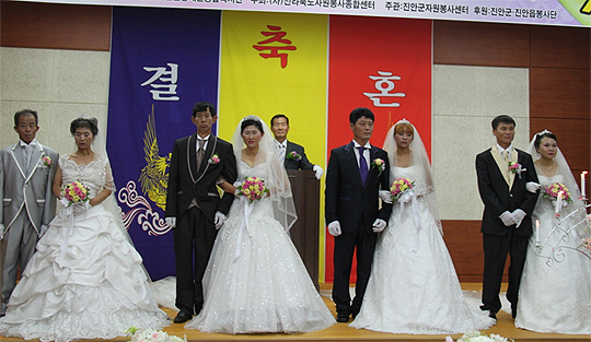 진안에서 결혼생활을 해 온 이주여성과 장애우 부부들이 합동으로 결혼식을 올렸다.
