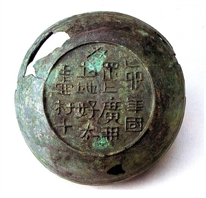 1946년 경북 경주시 노서동 신라고분 140호에서 각종 철기와 토기, 용과 봉황의 무늬가 있는 대도(大刀)와 함께 작은 청동합 하나가 출토되었다. 청동합의 동그란 밑면에는 4자씩 4행으로 '乙卯年國岡上廣開土地好太王壺우十'이라는 글귀가 양각되어 있다. 비록 16자에 불과하지만 그 의미는 자못 크다. 첫째, 을묘년은 서기 415년으로 광개토대왕비가 제작된 이듬해에 해당한다. 그런데 고구려에서 제조된 것으로 보이는 청동합이 어떻게 신라지역의 고분에 묻혔을까 하는 의문이 생긴다. 둘째, 왕의 시호를 '국강상광개토지호태왕'이라 하였는데 이는 비문에서는 '國岡上廣開土平安好太王'이라 하고, 모두루묘지에서는 '國岡上大開土地好太聖王'이라 한 것과 비교된다. 의미상 큰 차이는 없지만 눈여겨볼 대목이다. 셋째, 마지막의 '十'이라는 숫자는 호우가 여러 개임을 추측하게 하는데 아직까지 추가로 발견된 것이 없다는 점이 이상하다. 넷째, 글자의 상단 여백에 '井'자 모양의 표시는 무엇을 의미하는 것일까. 최근 도교와 관련된 벽사(僻邪)의 상징이라는 연구가설이 제시되었으나 확실하지 않다. 이처럼 청동호우는 짧은 명문임에도 불구하고 많은 의문을 내포하고 있다.