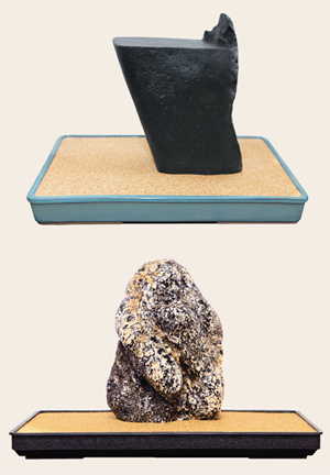 깊이 패인 굴곡을 통해 기운이 생동하는 바위를 연상케 하는 수석, 들쑥날쑥한 요철의 수석은 바위의 격을 높여준다. 또 다른 수석은 선경(仙景)을 연상케 하는 아름다운 산처럼 보인다. 이처럼 돌의 침묵은 우리에게 가장 많은 이야기를 건넨다. 석담 가득한 장이 될 수 있을 듯 하다.