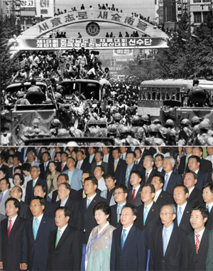 임금은 배, 백성은 물이라고 한다. 물이 화 나면 배가 뒤집힌다. 민암은 이를 잘 설명하는 표현이다. 5·18광주민주화운동은 민암이었다(사진 위). 지난 7월 1일 광역·기초자치단체장의 취임식이 열렸다(사진 아래). 이제 자치단체장들은 민심이라는 배를 탔다. (desk@jjan.kr)