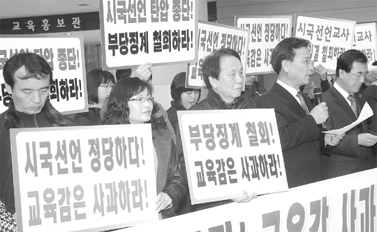 올해초 열린 시국선언 교사에 대한 부당징계 철회를 요구하는 공무원·교사탄압 저지 전북대책위 기자회견 모습. (desk@jjan.kr)