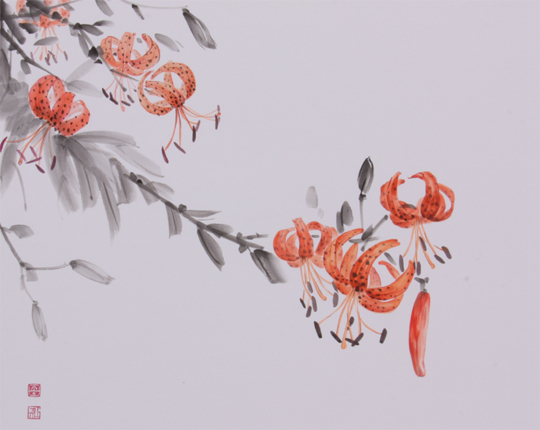 깨끗해진 산자락의 참나리가 맑은 물위로 스치는 강바람에 볼을 내밀고 있다. '저 솔로몬의 옷보다 더 고운 백합화'라는 가사를 지닌 찬송가를 부르곤 하는데, 우리 꽃에서는 참나리가 그 백합과 같은 아름다움을 지니고 있지 않나. <조선어사전> 에서는 '농요(農謠)를 뫼나리라고도 한다'라고 하듯이 요즈음 산에 가면 흔하게 볼 수 있다. 조선어사전>
