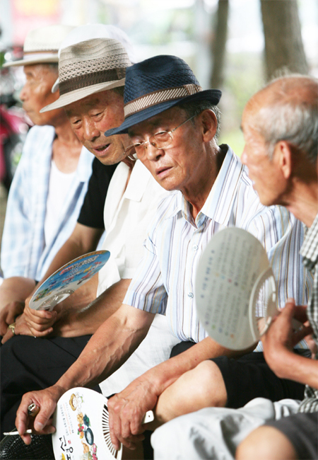 전주를 비롯 전북 7개 시군에 폭염주의보가 내려진 22일 전주 덕진공원에 어르신들이 부채를 부치며 더위를 식히고 있다.