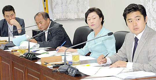23일 전주시의회 문화경제위원회에서 열린 2010 주요업무보고회에서 의원들이 강순풍 완산구청장으로부터 업무보고를 받고 있다.