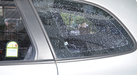 전주에 사는 김모씨(효자동·35)는 최근 자신의 승용차를 보고 깜짝 놀랐다. 도심 아파트 주차장에 놓아둔 차량 유리창에 탄환 자국 같은 구멍이 뚫려 있었고 주변이 온통 금이가 금방이라도 부서질 것 같았기 때문이다.
