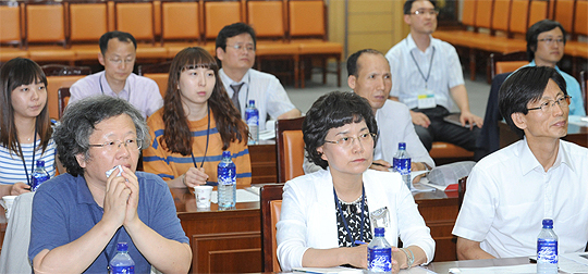 26일 전북도청 중회의실에서 열린 전라북도 문화기술(CT) 전문가 구성을 위한 포럼에서 참석자들이 최이권 모젼스랩(주) 대표로부터 주제발표를 듣고 있다.