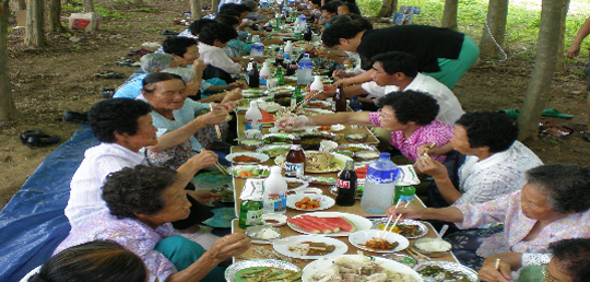 K-water 물사랑나눔단(자원봉사동아리)이 고산면 이장단 및 새마을부녀회와 공동으로 27일부터 30일까지 4일간 계속하는 '어르신 건강한 여름나기'행사는 수자원공사 직원들이 매월 월급에서 모금한 사회봉사기금을 재원으로 마련됐다.