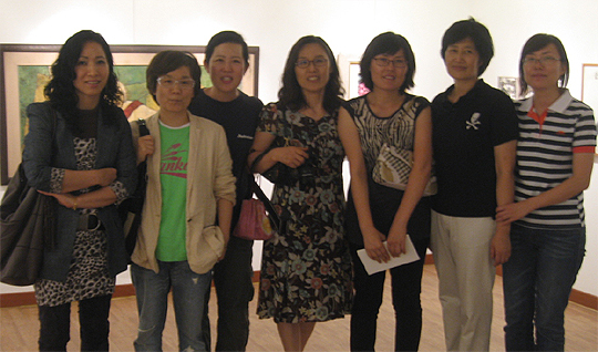 '일곱 여자 일곱 이야기 -함께 오다'전을 열고 있는 여성작가들. 왼쪽부터 김신교, 송수미, 차유림, 최분아, 고보연, 김영란, 이일순씨. (desk@jjan.kr)