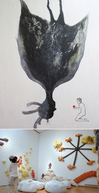 설치작가 고보연씨는 복사된 인물과 중첩된 고서의 이미지를 통해 과거 농경사회를 기반으로 한 공동체적 연대의식을 작업한 '그들이 하신 말씀은…'을 내놓았다. 전통의 미감을 되살려 주는 조형적 발견이다.