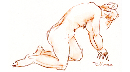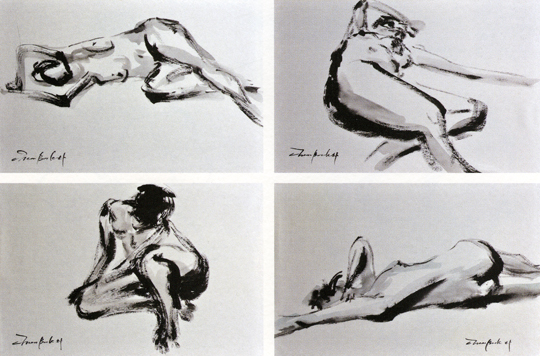 굵은 연필 같은 흑연, 콩테, 먹 등 다양한 재료로 그린 누드크로키가 선보였다. 여체의 다양한 포즈는 날렵한 선으로 부드럽게, 풍만한 가슴과 엉덩이는 볼륨감 있는 선으로 드러냈다.
