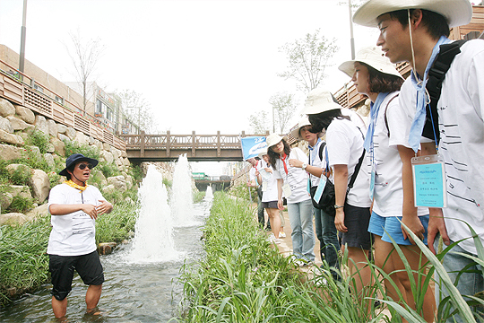 3일 저녁 전북대 훈산건지하우스에서 발대식을 가진 양국 대학생들은 4일 조를 나눠 전주지역 도심하천 및 소류지 생태탐방에 나섰다. 도심 생태하천의 전국적 모델로 부각된 전주천과 복개된 지 47년만에 다시 햇빛을 보게 된 노송천, 생태하천 복원사업이 진행되고 있는 건산천, 그리고 도시 소류지인 오송제와 지시제 등이 전주의 하천 생태탐방 코스가 됐다.