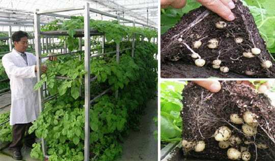 순창 식물생명공학 정원을 설립한 김재훈 박사가 생산 중인 우량 씨감자. (desk@jjan.kr)