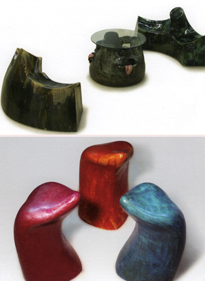 엄혁용씨의 세라믹을 소재로 만든 의자 '不在'는 주목을 모았던 작품이다. 도자의 원료로만 쓰였던 세라믹을 의자와 탁자로 표현, 파격을 시도한 것. 혀를 쏙 내놓고 웃는 사람의 얼굴이 새겨진 탁자를 보면, 배시시 웃음이 나온다.