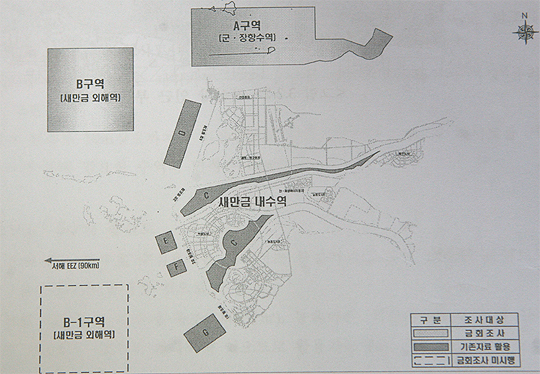 이번 용역안에서는 A수역이 어업권 보상(2039억원)과 갯벌생태습지보전지역(15.3㎢)이라는 이유로 준설구역에서 제외됐다. (새만금 산업단지의 매립토 9500만㎥은 A수역에서 조달된다)