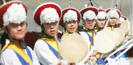 18일 전주전통문화센터에서 열린 제15회 전국대학생 마당놀이 경연대회에서 대상을 차지한 한예종,중앙대,청주대,서울예대 연합팀이 평택농악을 선보이고 있다.