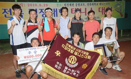 이 회장은"유독 전북직장대항 테니스대회와는 연이 없었는데 회사의 적극적인 지원과 동호인들이 힘을 모아 우승을 할 수 있었다"고 말하며 흐뭇해 했다.